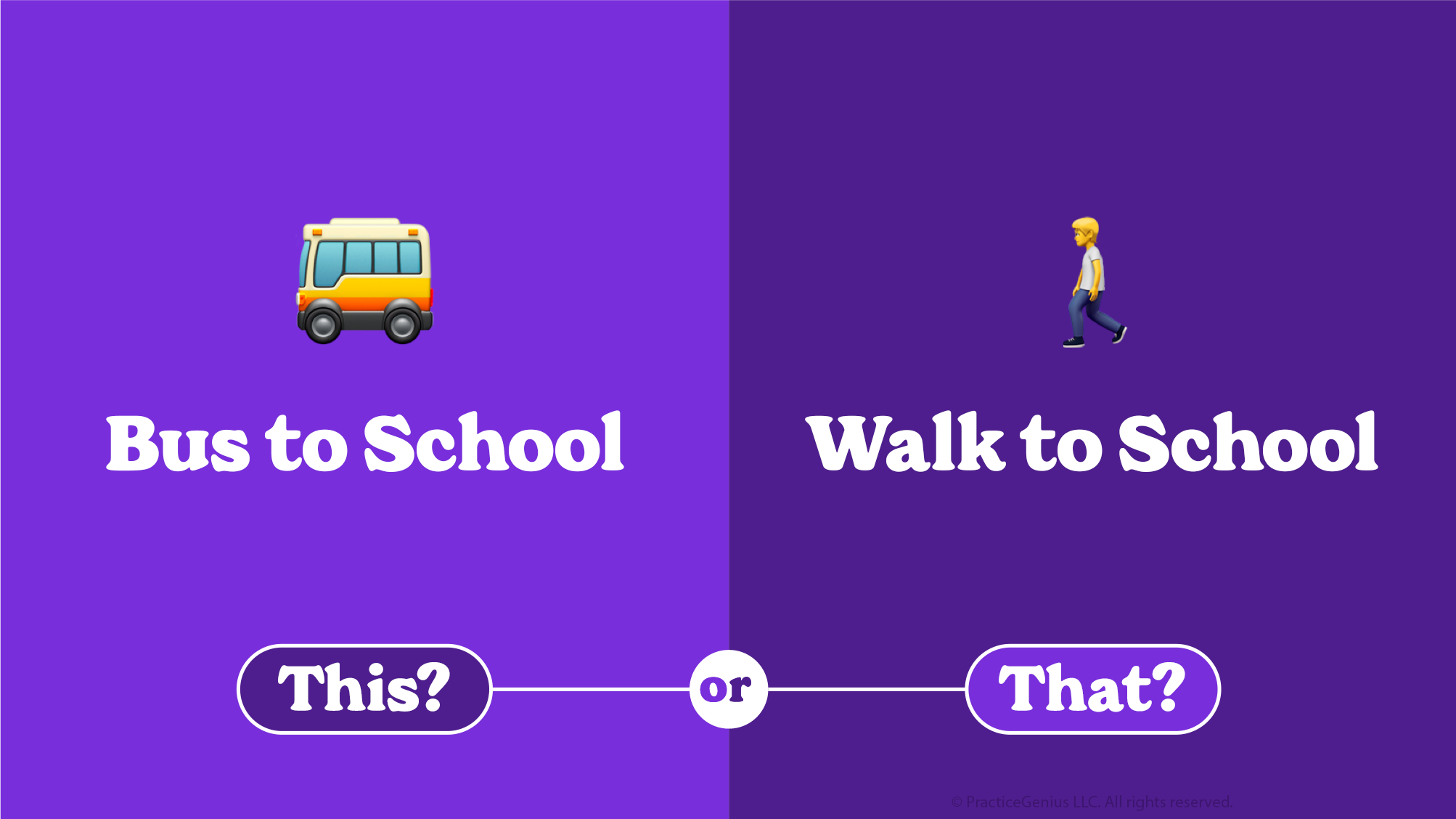 We're sorry, the survey "This or That: Bus to School or Walk to School?" has been closed.